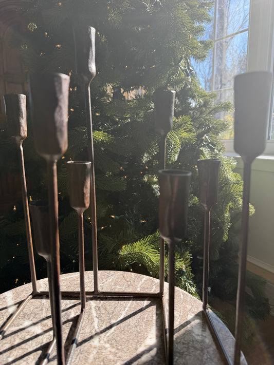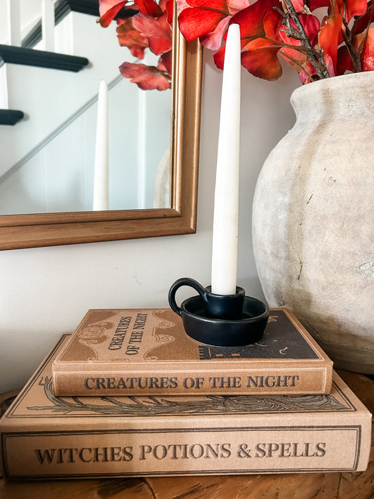 Grey Fluted Wax 10" Taper Battery Operated Set