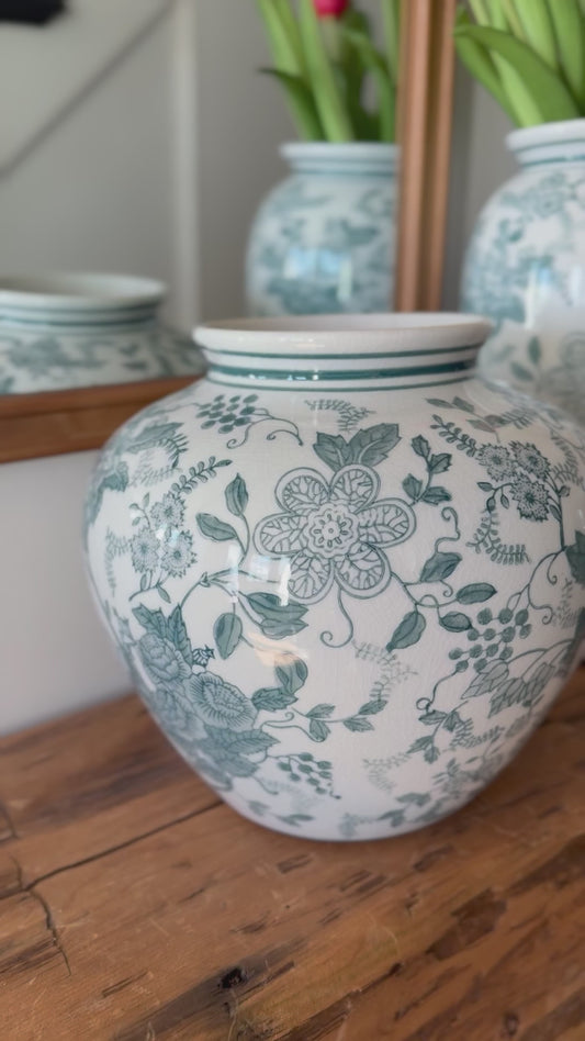 Large Teal Chinoiserie Vase