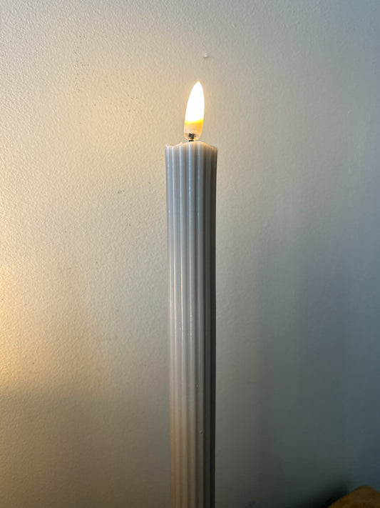 Grey Fluted Wax 10" Taper Battery Operated Set