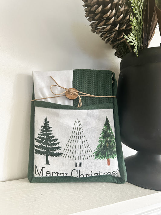 Merry Tree Tea Towel and Pot Holder Hostess Set
