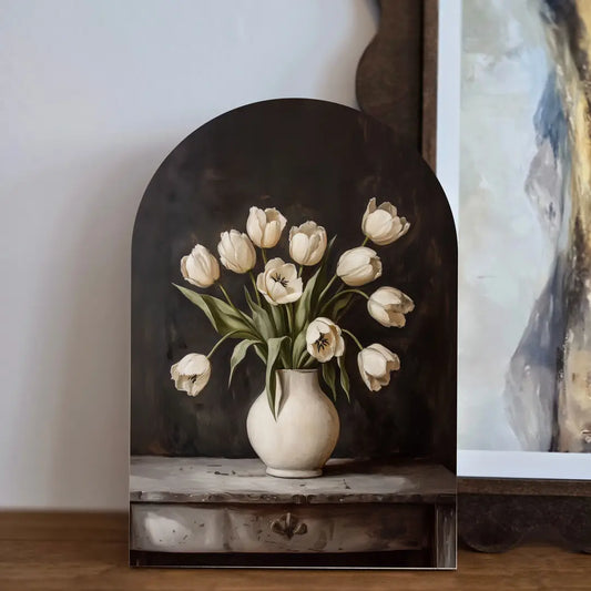 Moody Tulip Arch Art with Black Stand