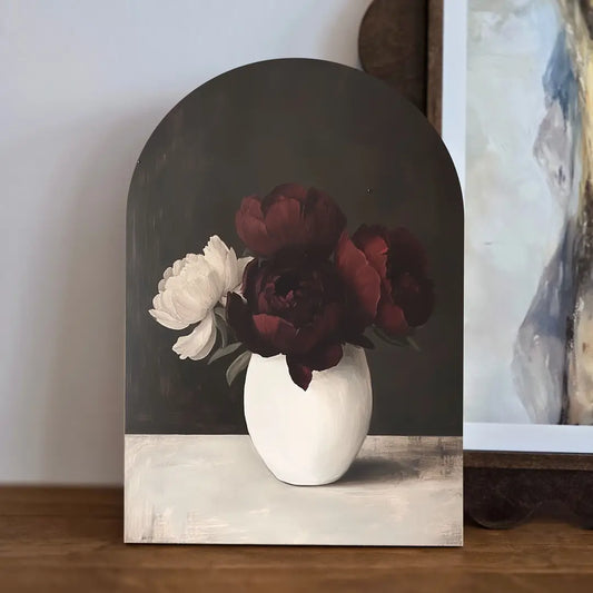 Moody Floral Arch Art with Black Stand