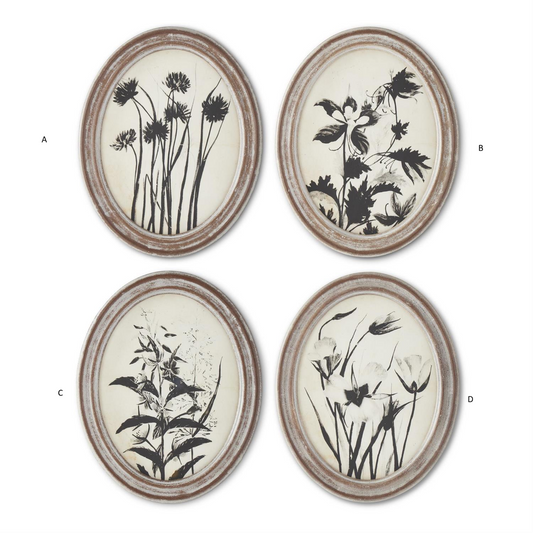 Oval Black, Cream & Green Botanical Wall Art- Assorted Styles