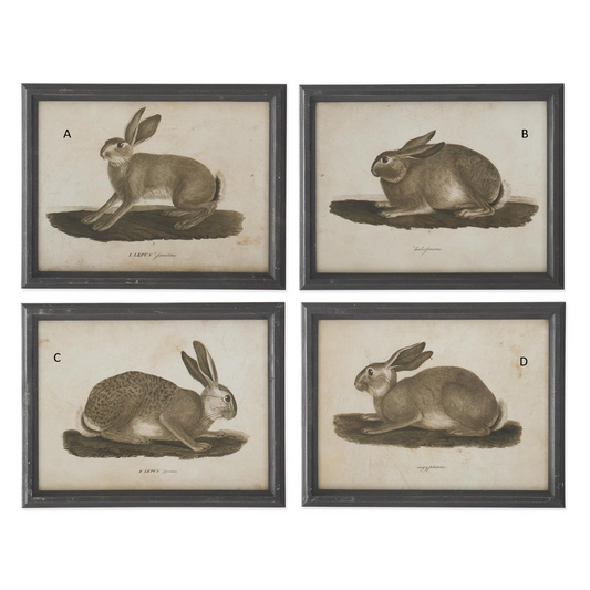 Vintage Black Framed Rabbit Prints- Assorted Styles