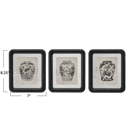 Floating Chinoiserie Vase Art in Distressed Black Frame- Assorted Style