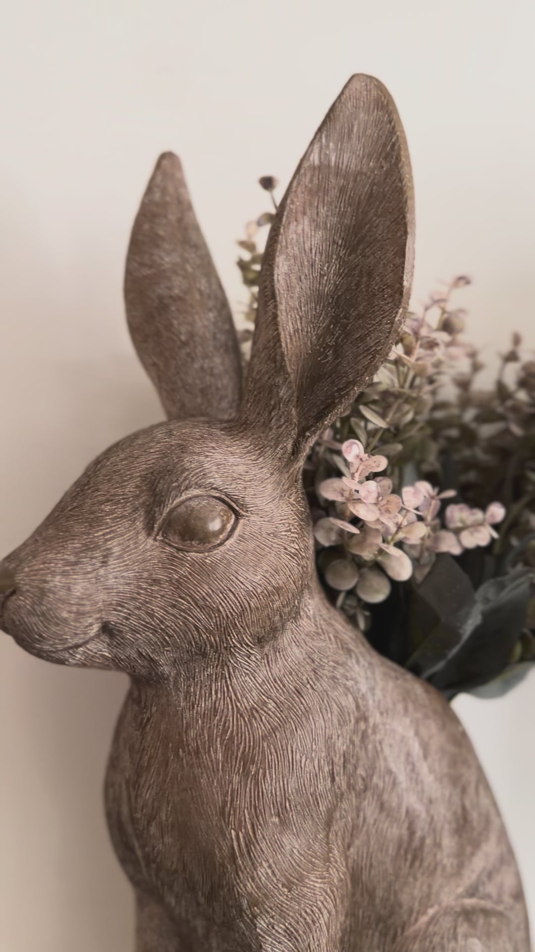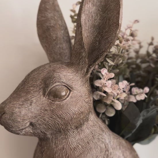 Elevate your seasonal décor with this charming rabbit-shaped planter, expertly crafted to display faux florals with refined elegance throughout the warmer months.