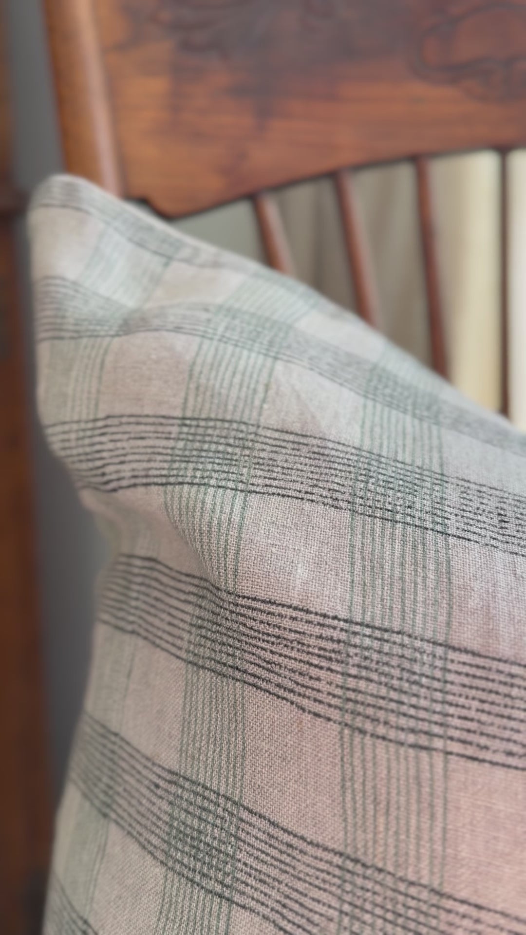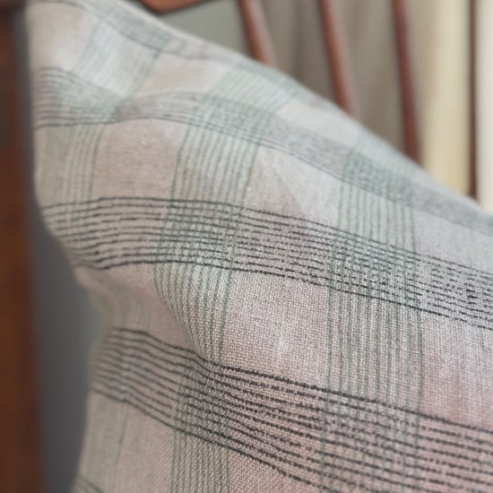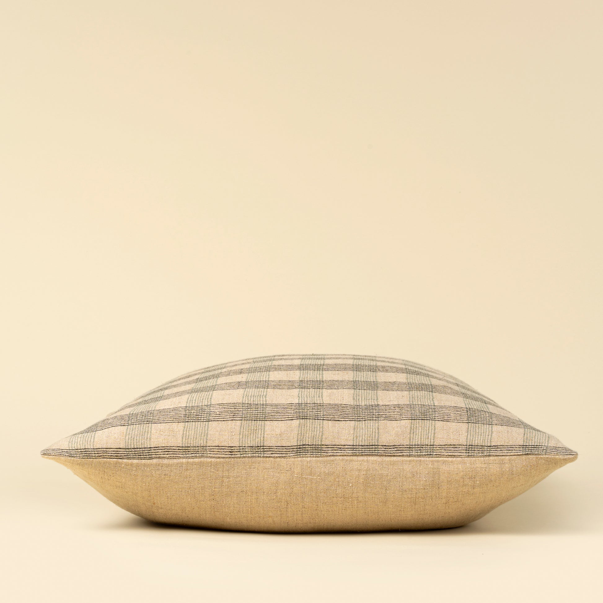 Add subtle pattern and soft colour to your space with the Block Print Plaid Linen Pillow. Hand block printed by skilled craftsmen, this modern decorative pillow brings ethical sourcing and timeless design together. The charcoal and light blue plaid pattern adds quiet texture, while the natural 100% Belgian linen base offers breathable comfort and durability.