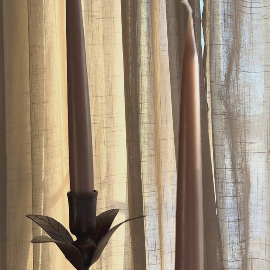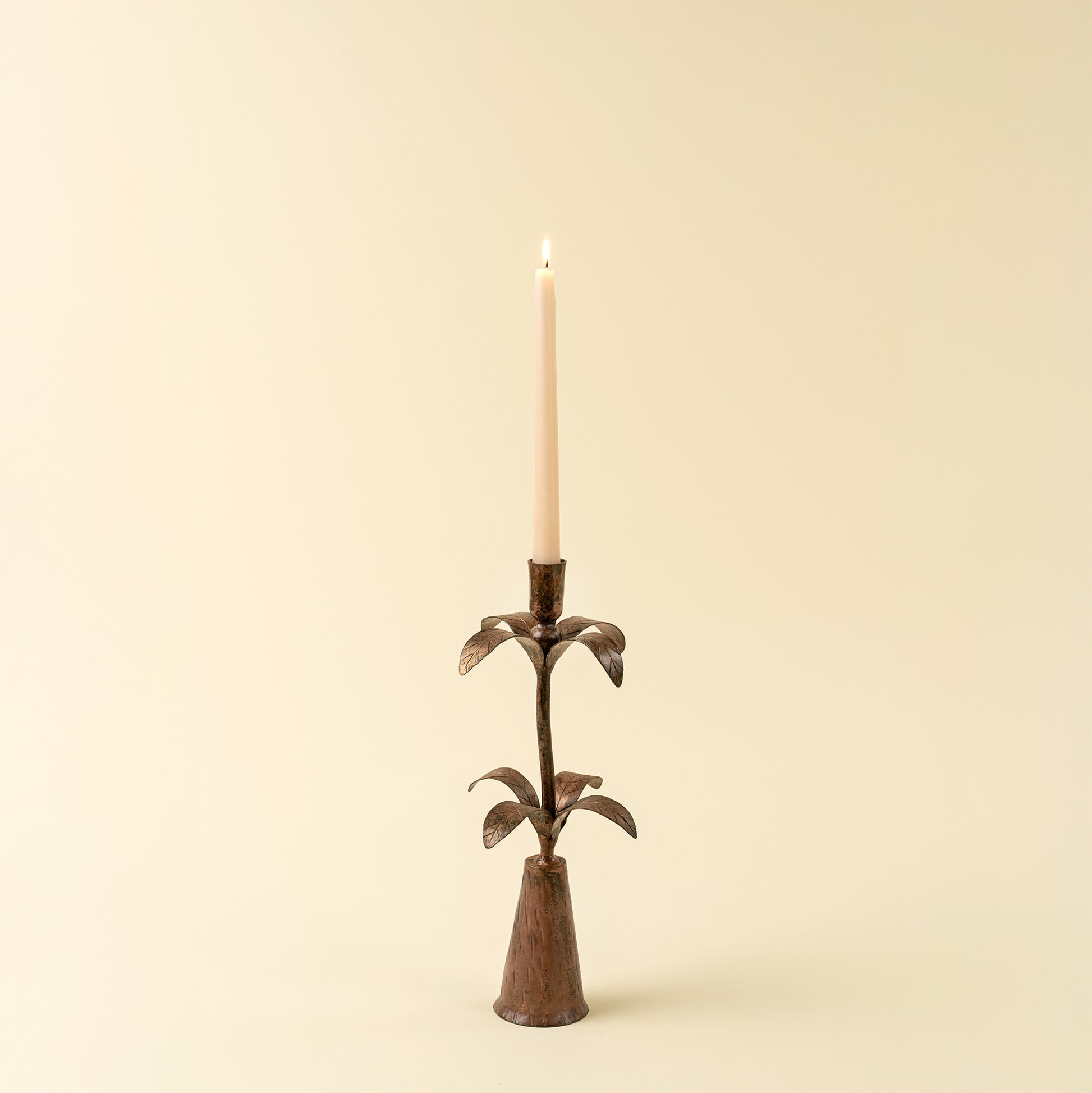Add a hint of the tropics to your home with the Tropicana Forged Candlestick, a sculptural iron candle stand that brings artistry and warmth to any setting. Handcrafted in India using age-old forging techniques, it features finely carved botanical leaves. It's perfect for a springtime tabletop or layered with other accent decor year-round. Designed to hold taper candles, it turns everyday evenings into small celebrations.
