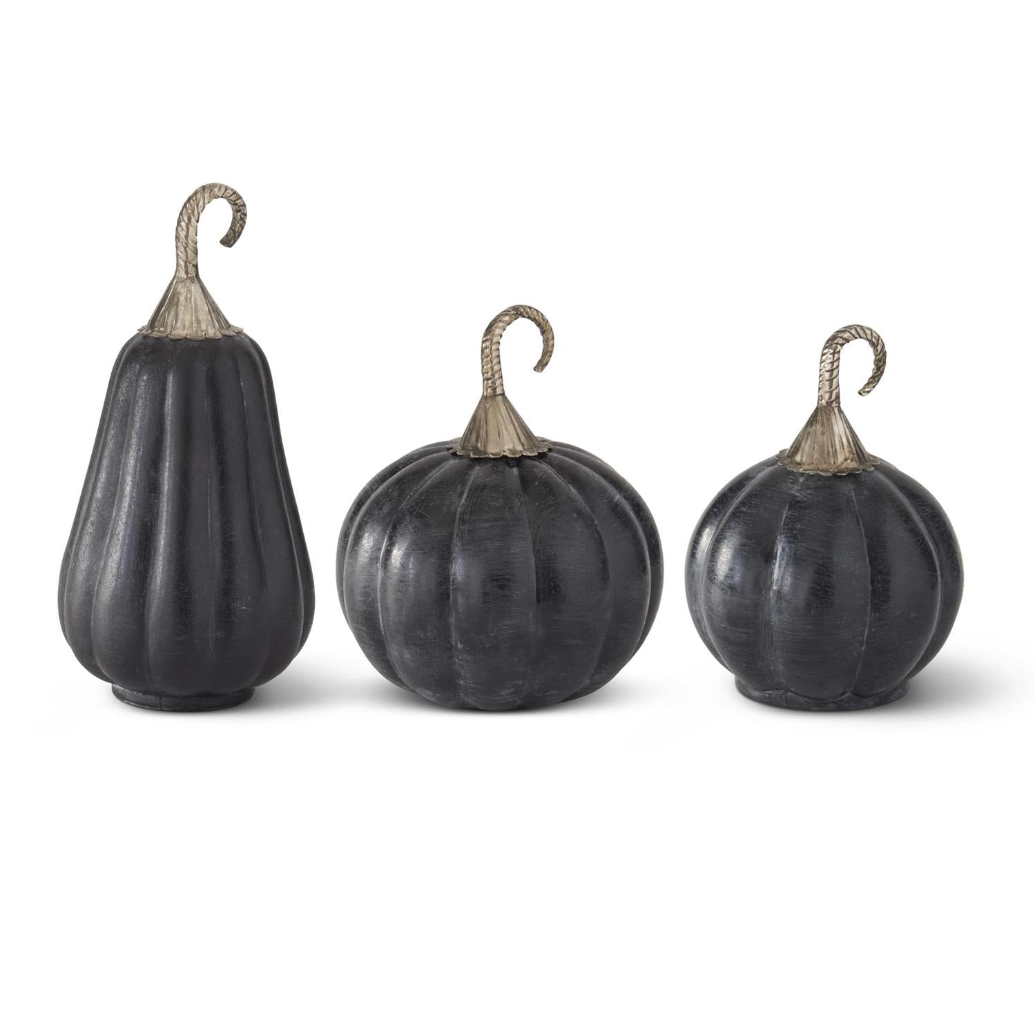 These elegant black glass pumpkins feature iron accents and an antiqued finish, ensuring each piece is uniquely distinct..