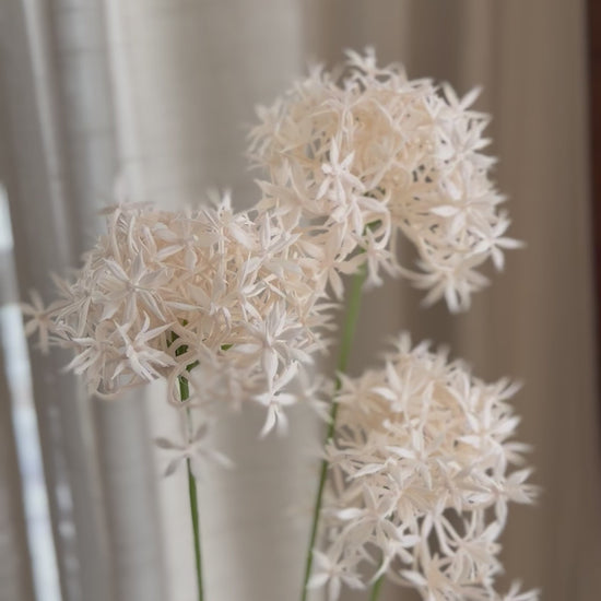 With its dramatic globe-shaped blooms and airy silhouette, the Allium Floral Spray adds instant elevation to any styled arrangement. This faux flower brings lifelike detail and soft texture to your space. Its long, bendable stems make it easy to play with height, shape, and movement in your favourite decorative vase.