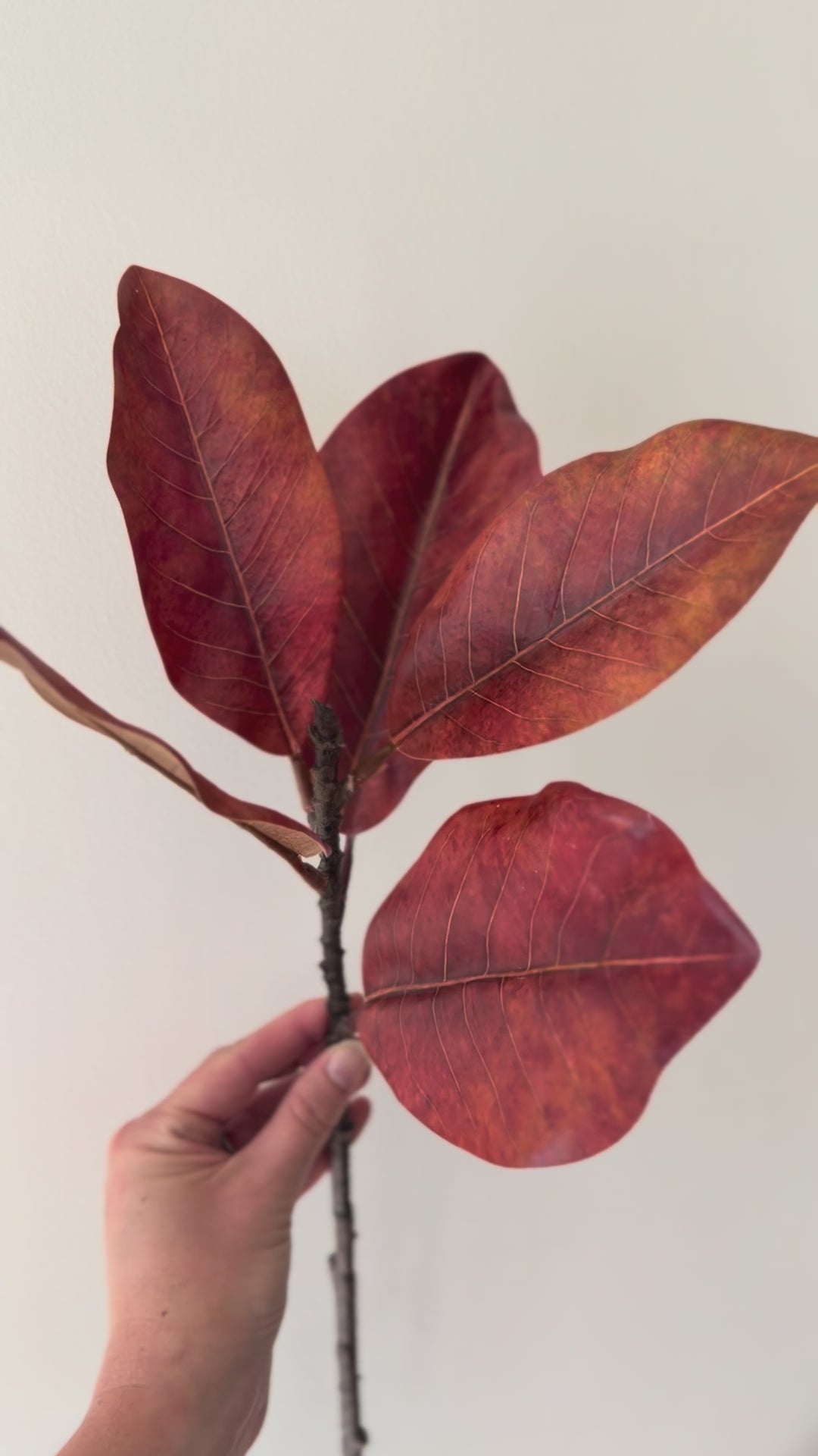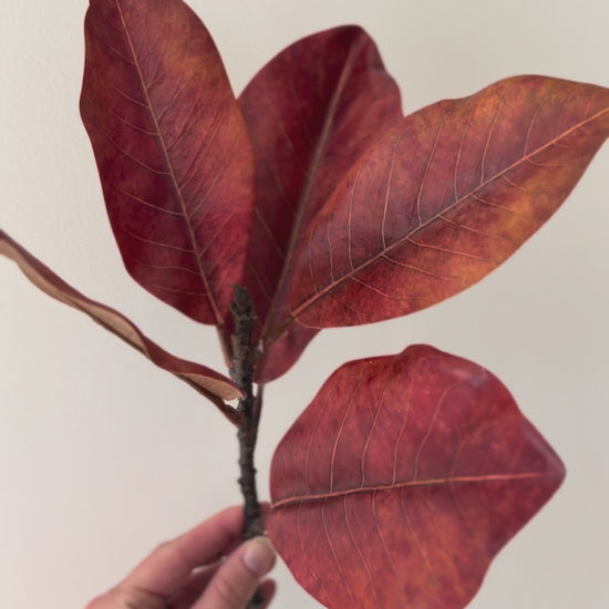This lifelike magnolia spray showcases a copper/ orangey red shade, offering a versatile decorative element throughout the year. Ideal for enhancing garlands and trees, it brings a sophisticated touch of color and texture, especially during the holiday season.