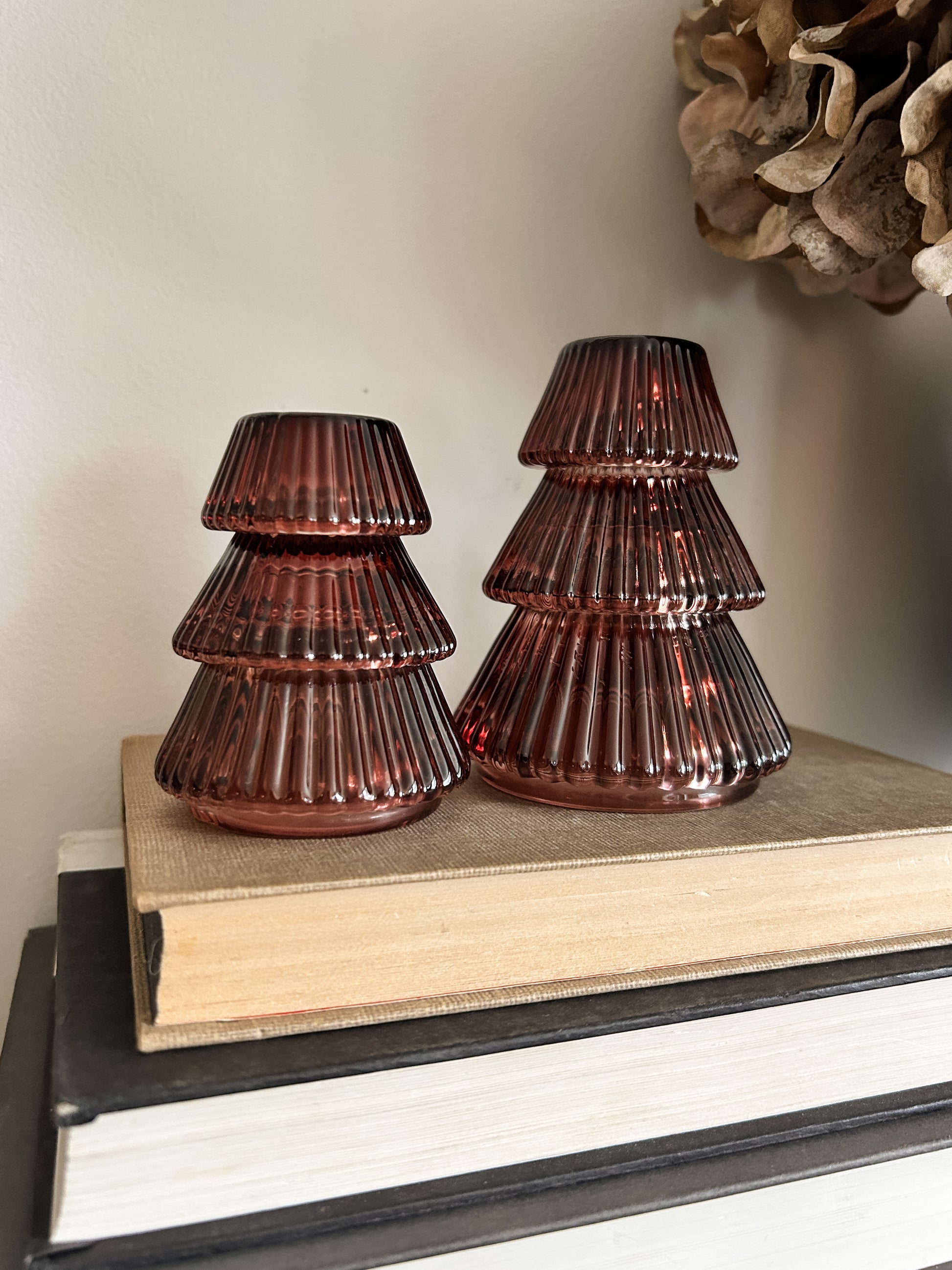 Featuring elegant ribbed glass design available in red or green, these Empire Tree Candle Holders come in small or large sizes. Choose your preferred size or mix and match. Each holder is sold separately.