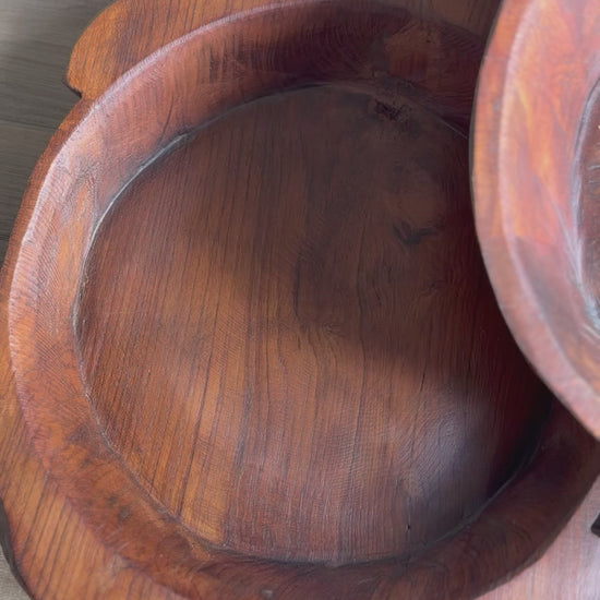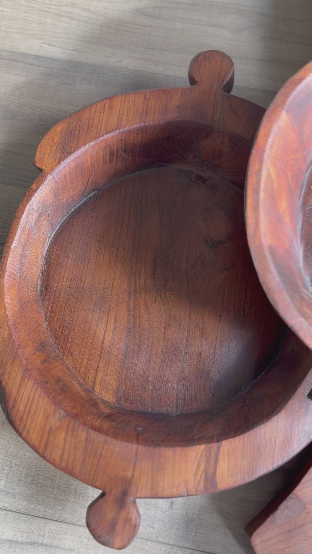 Add a touch of history to your home with the Vintage Wooden Parat. Crafted from authentic antique teak wood, each found Indian Parat bowl carries a unique story and a rich heritage. With its earthy texture and natural wood grain, this decorative wooden bowl makes a striking statement on coffee tables, counters, or consoles. No two are alike, with variations in size, shape, and imperfections that enhance its vintage aesthetic and charm.