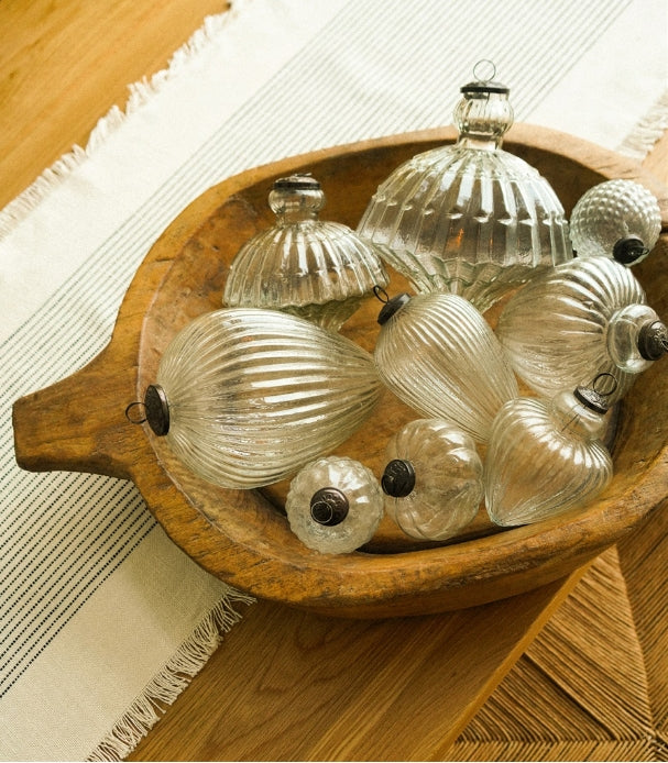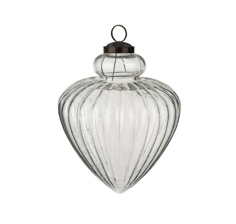 Materials & Composition: Made from high-quality, recycled clear glass with an iron holder, this piece balances durability with an airy, timeless aesthetic. Its oversized design makes it a standout accent in festive decorating.