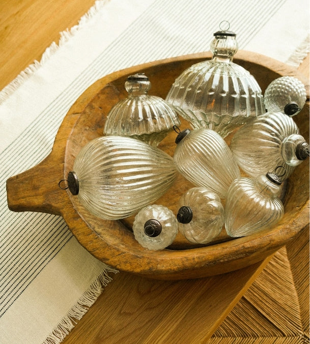 Smaller-sized glass ornament, perfect for layering with larger pieces