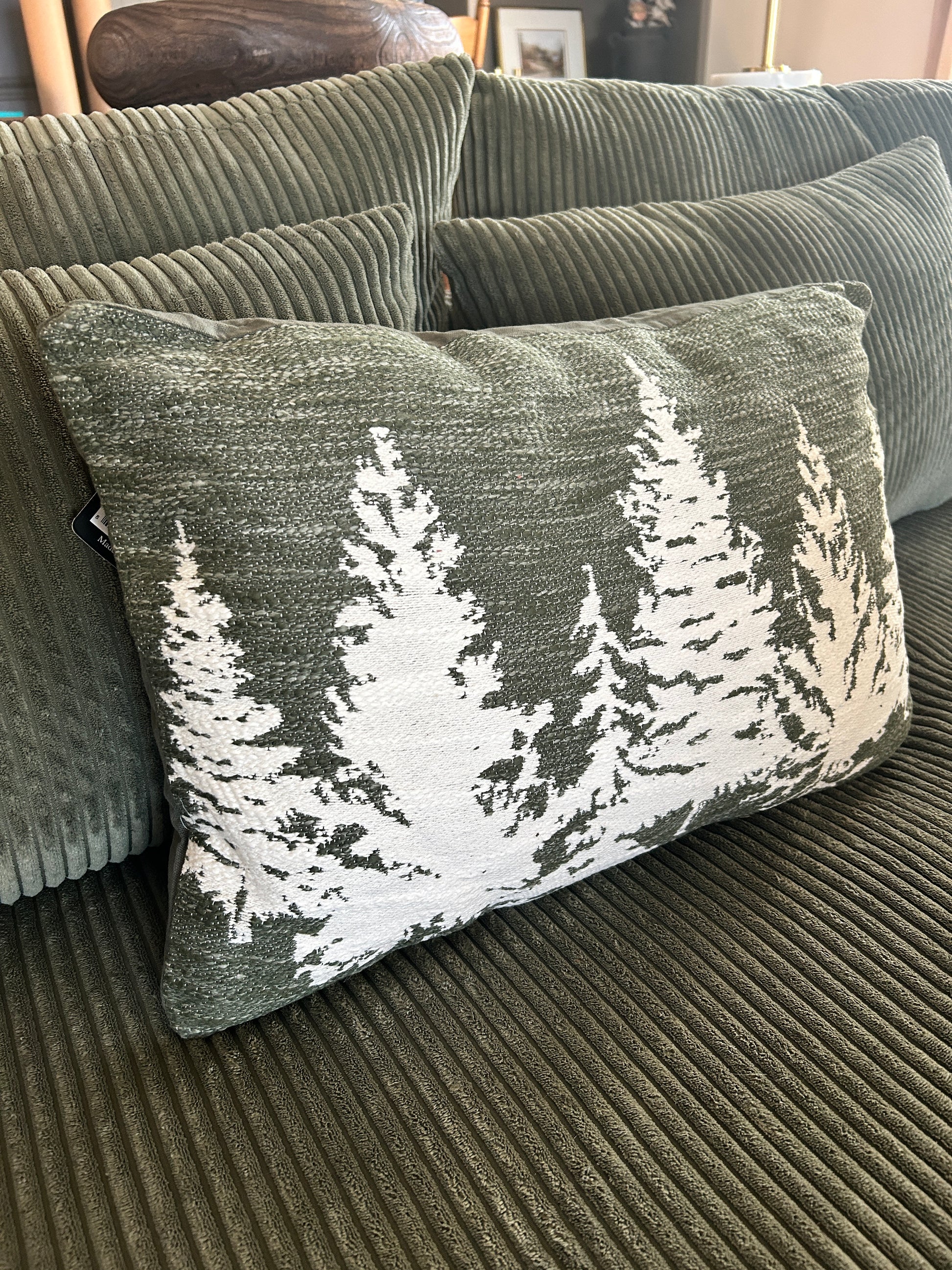 This lumbar pillow in green and white brings a subtle winter-inspired accent to your home decor.