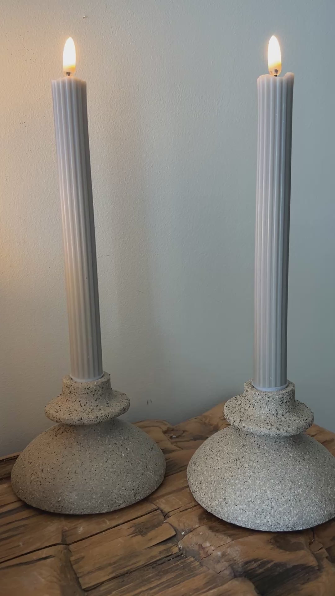 Grey Fluted Wax 10" Taper Battery Operated Set