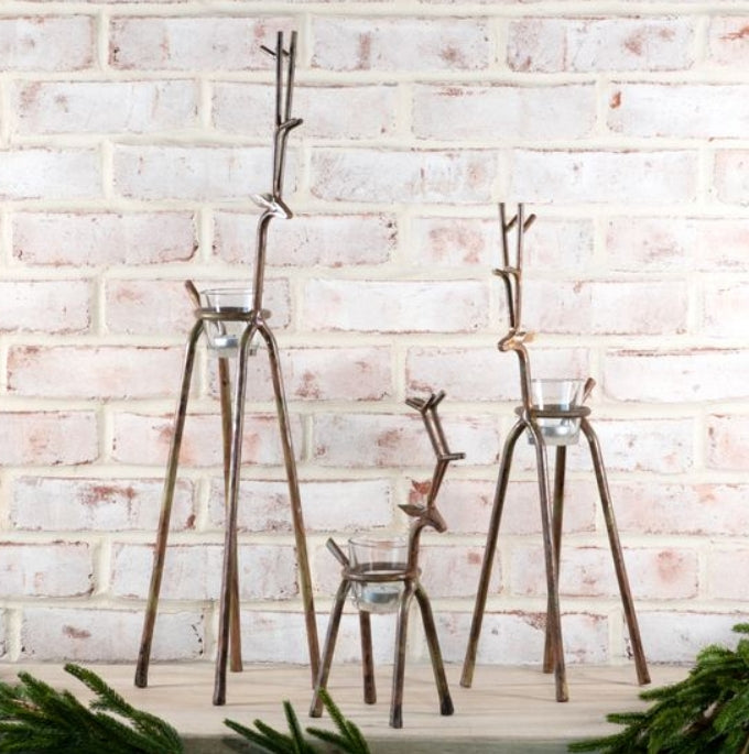 Enhance your mantels and tabletops with the elegant glow of these gold reindeer tealight holders.