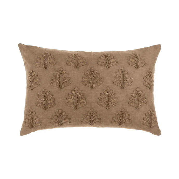 Add a touch of nature-inspired elegance to your space with the 16x24 Orchard Pillow in Mink. Crafted from a soft linen and cotton blend, this lumbar pillow features delicate cotton-embroidered botanical detailing that adds texture and depth. Its versatile charcoal hue and intricate embroidery make it an ideal layering piece for sofas, beds, or accent chairs, effortlessly blending sophistication with comfort.
