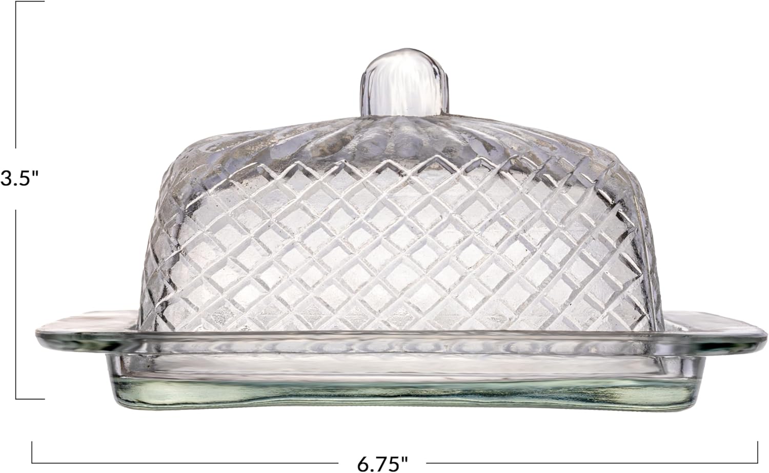 The lid is 4.75" w x 3.25" d x 2.2" H. Depending on butter being used, butter may need to be cut or sliced.
