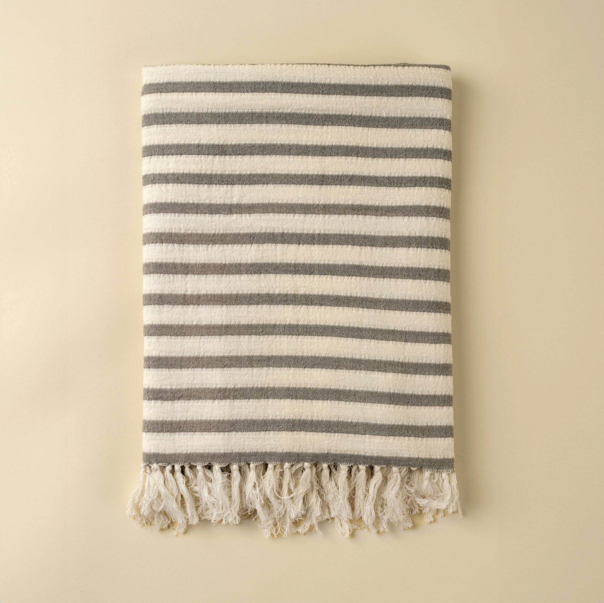 Lightweight and effortlessly stylish, the Castaway Cotton Throw is your new go-to for coastal-inspired comfort. Woven from soft, natural cotton, this summer-weight throw blanket features cream and blue stripes, a hand-knotted fringe, and a breezy feel that suits any season. Whether draped over a chair, layered on a bed, or packed in your picnic basket, it’s the kind of piece that goes where you go.