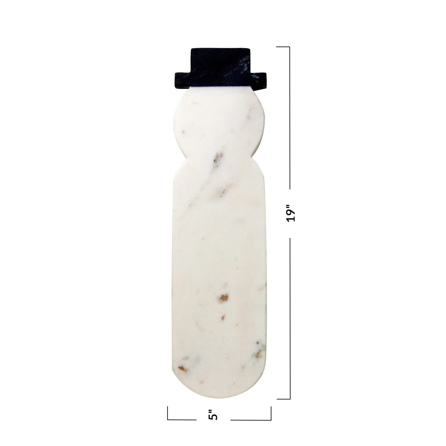 This white and black marble snowman-shaped cheese and cutting board is a cute and chic piece that will enhance the dining experience. The board features a snowman shape that adds some charm and character to the table. The board also features a white and black color scheme that adds some contrast and elegance, creating a stunning and sophisticated display. The board is made of marble, which has a smooth and durable quality. It is ideal for serving cheese, crackers, fruits, or other snacks in style. The board is easy to clean with a damp cloth and mild soap. Hand wash only. The board measures 19 inches in length and 5 inches in width. This is the perfect piece to impress or treat anyone. A cute and chic white and black marble snowman shaped cheese and cutting board. A perfect piece to serve cheese, crackers, fruits, or other snacks in style. Hand wash only.