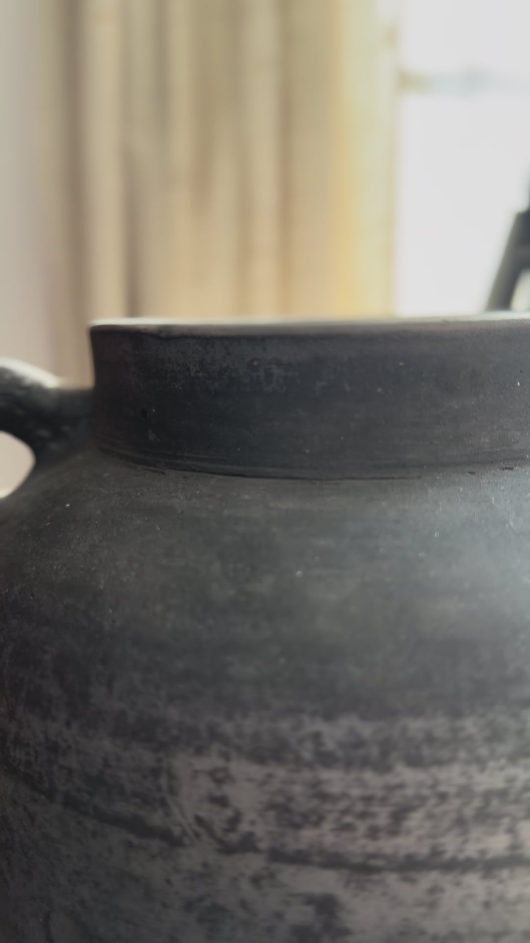 Materials & Composition: 100% Terracotta. Skillfully crafted in India, each vase is hand-thrown on traditional pottery wheels and fired in wood-fueled kilns. The distinctive matte-black finish emerges from a double-firing process, where sand and smoke transform the natural terracotta into a stunning moody black.