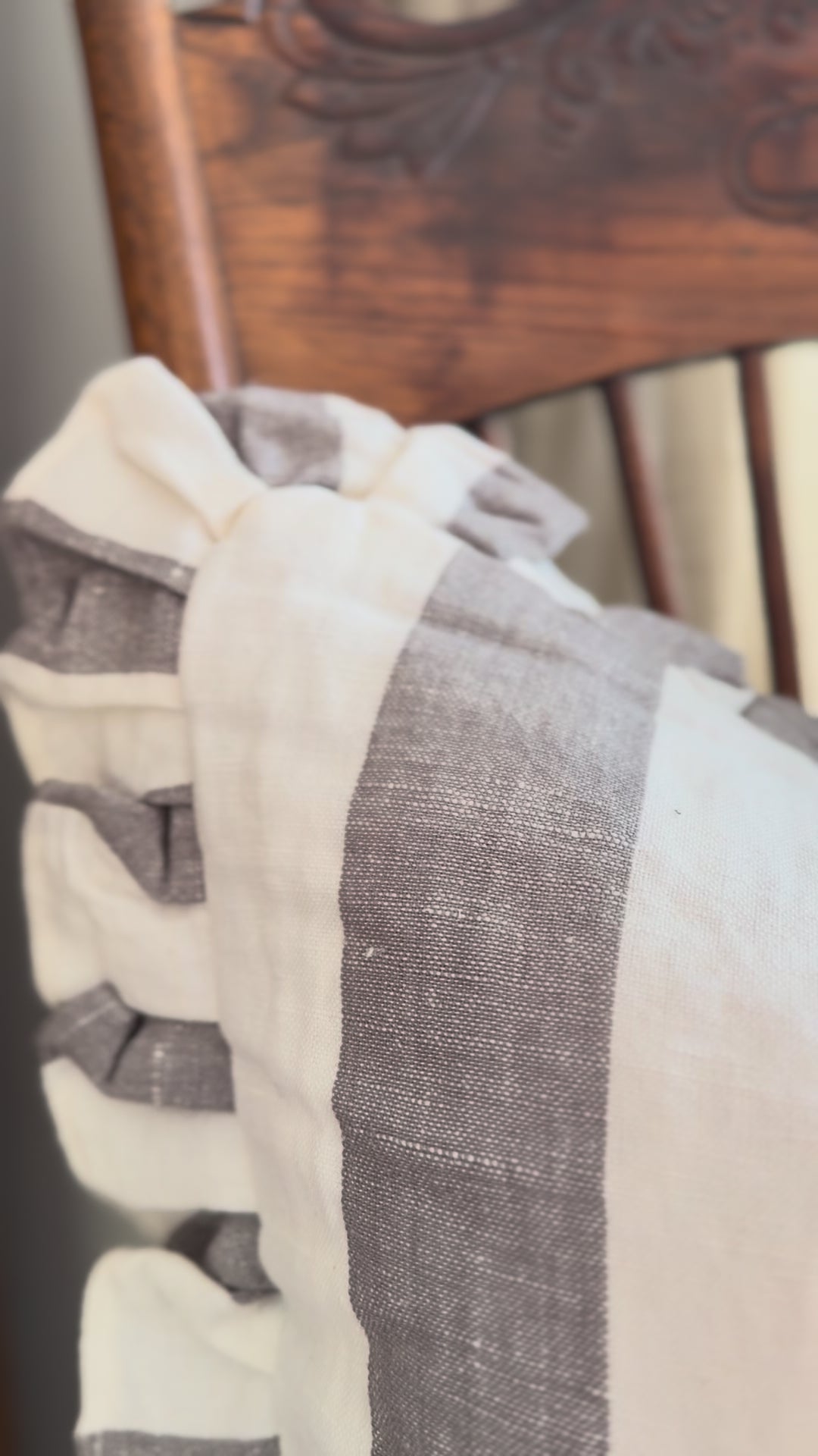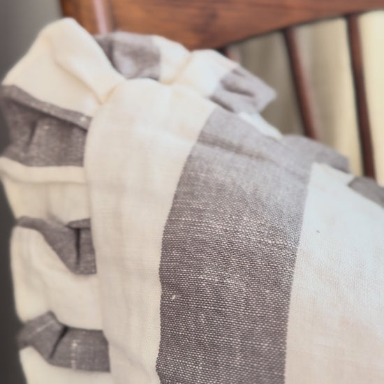 Thick Grey Stripe Ruffle Pillow