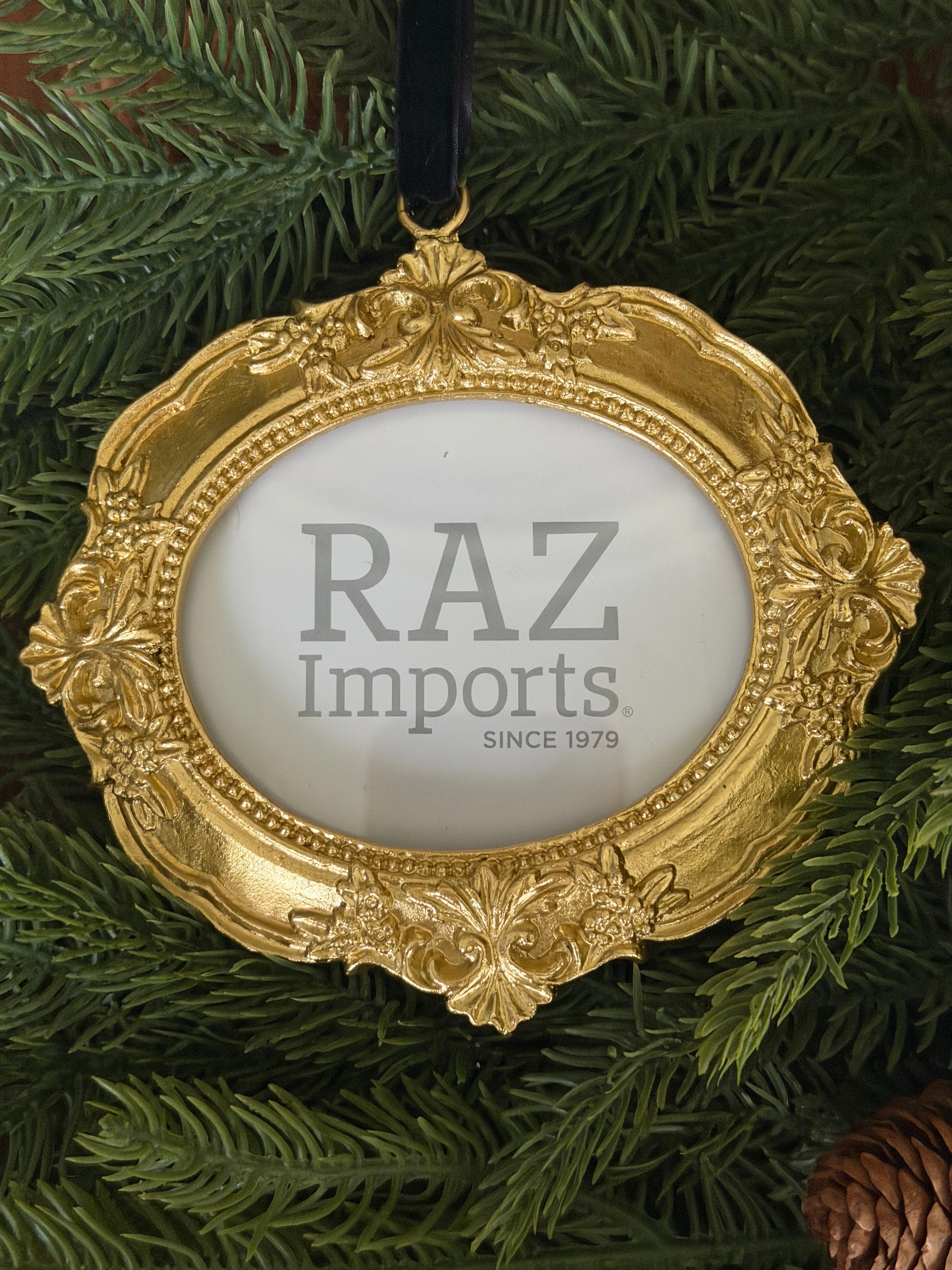 Exquisite vintage-style frame ornaments featuring a plush velvet hanger. Fill with your favourite family memories.