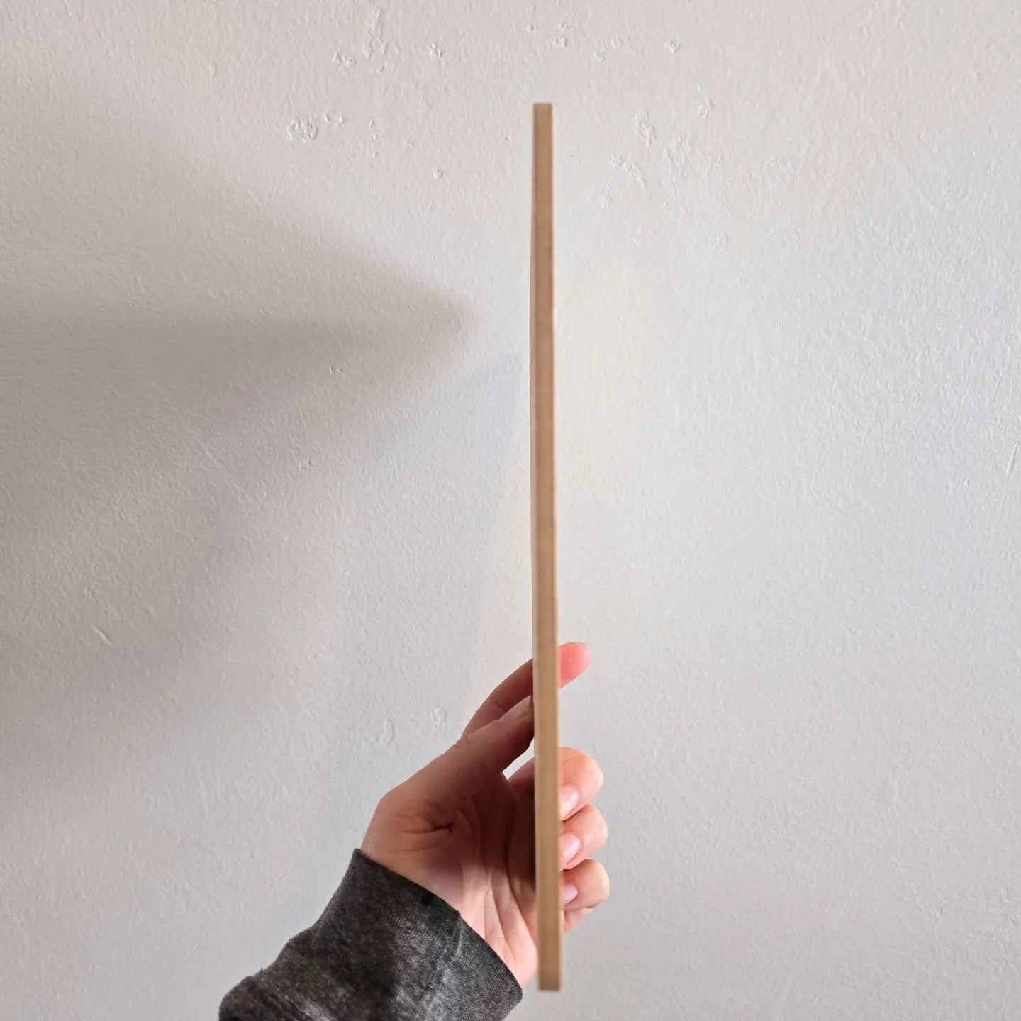 Made out of 1/4" wood, painted and then the design is UV printed directly to the wood. Comes with a wood base stand (as shown) make it easy to display on shelves and tables.
