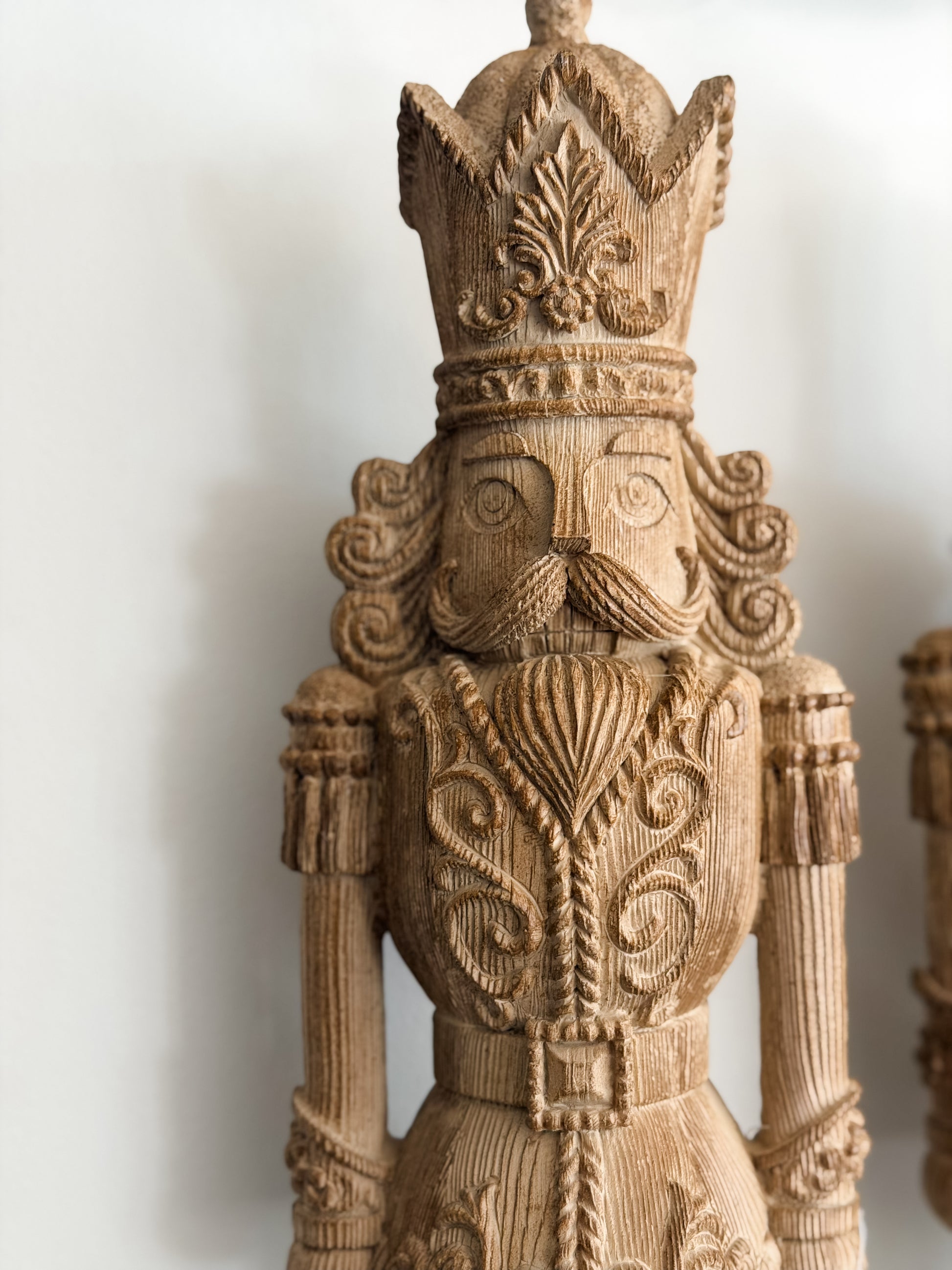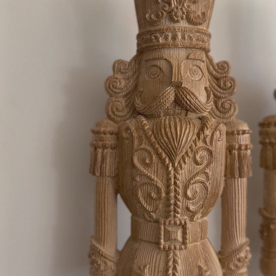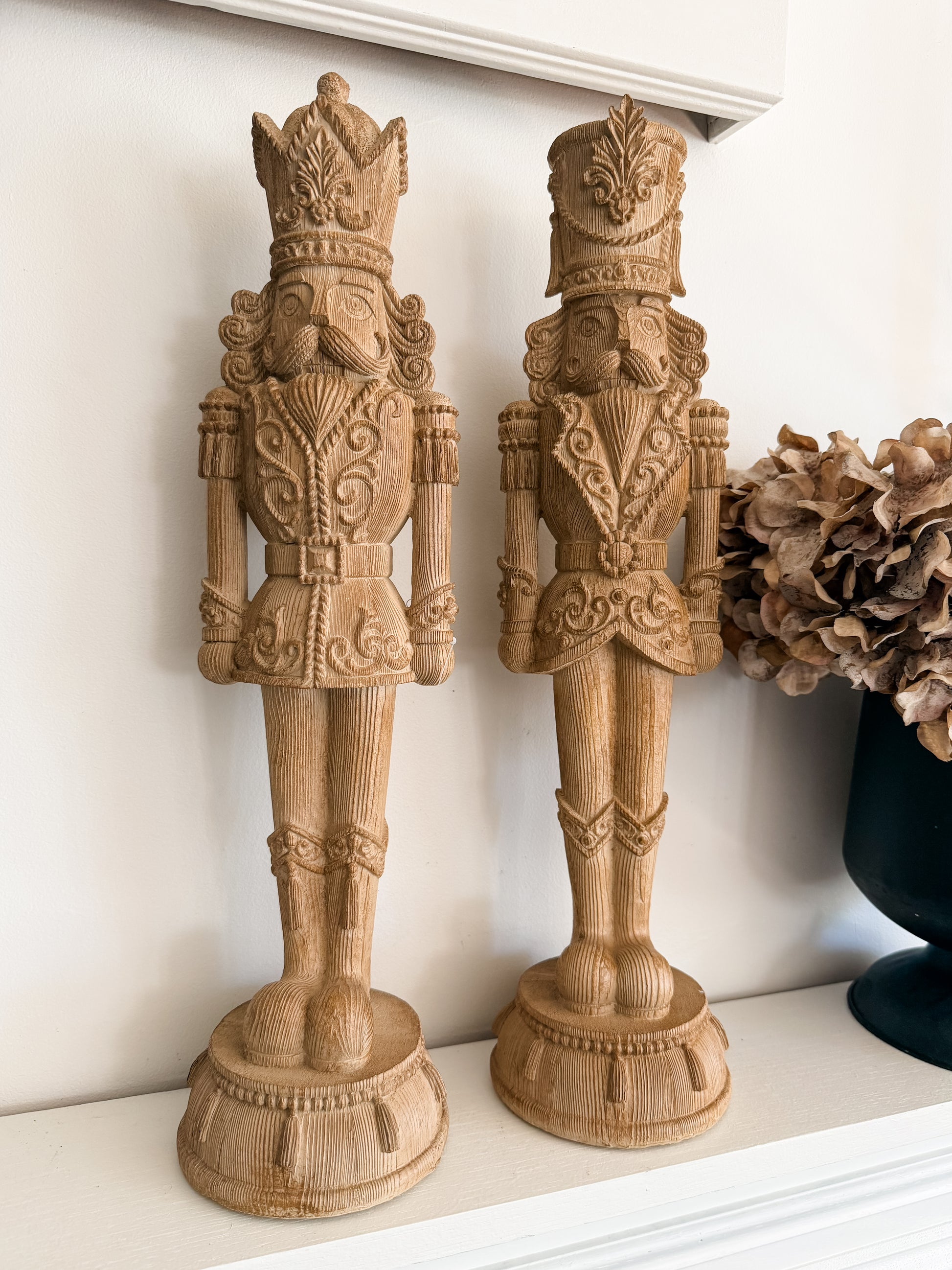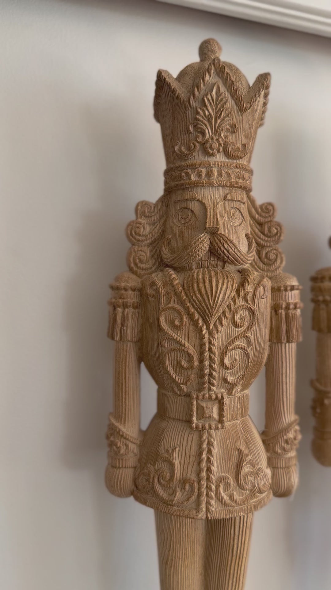 These beautifully crafted nutcrackers are made from resin, expertly designed to mimic the appearance of real wood.